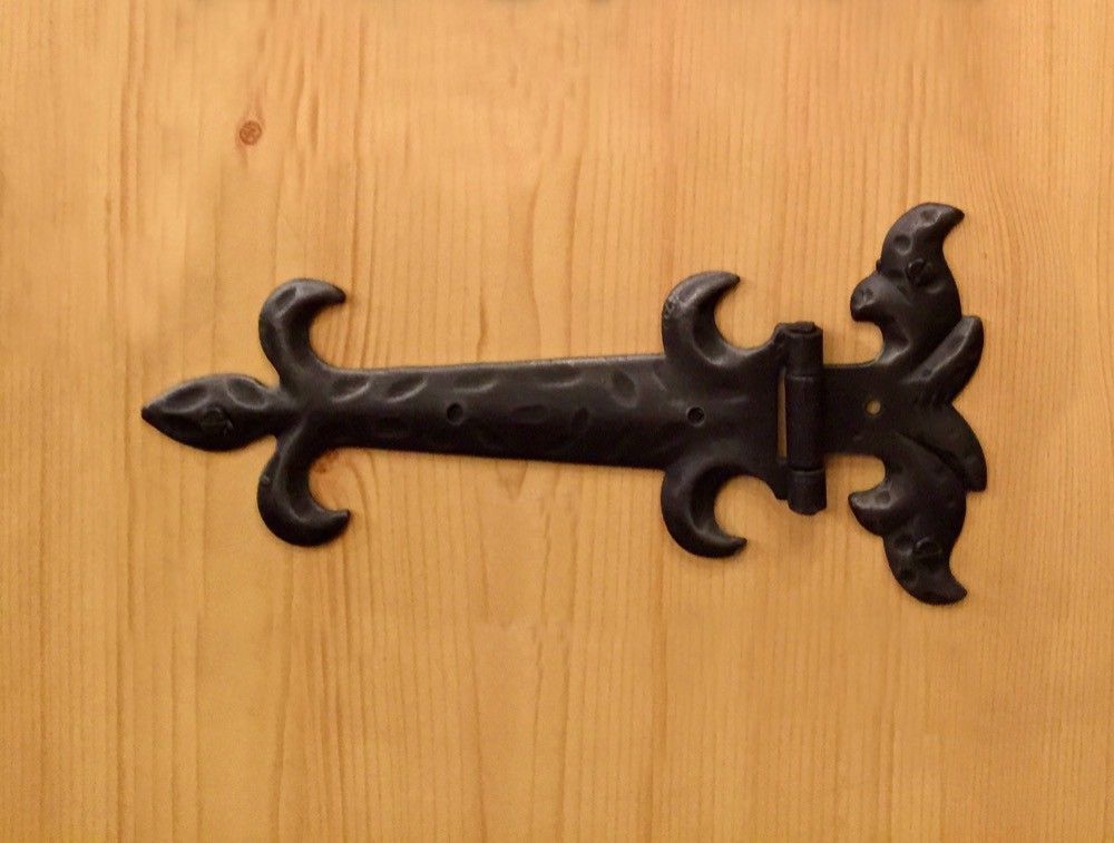 Een historisch meubelscharnier vervaardigd voor oude kastdeuren en kisten. Deze antieke scharnier is geschikt voor verschillende doeleinden, zo kan deze worden gebruikt op het gebied van monumentenzorg renovaties en in de houtindustrie, als onze scharnieren en hulpstukken zijn ambachtelijke en zeer stabiel. Het ambachtelijk bedrijf is gespecialiseerd in de productie van hardware voor deuren, poorten, ramen, accessoires en sieraden gemaakt van gesmeed en geslagen ijzer. Zelfs vandaag de dag, worden deze producten handgemaakt ontworpen, verschillende oppervlaktebehandelingen vinden plaats en dit alles van de hoogste kwaliteit . Dit is de rechterzijde, geef aan in de opmerking of u links of rechts moet hebben!!! - In onze winkel vindt u nog veel meer scharnieren, in verschillende maten en voor verschillende doeleinden.