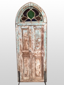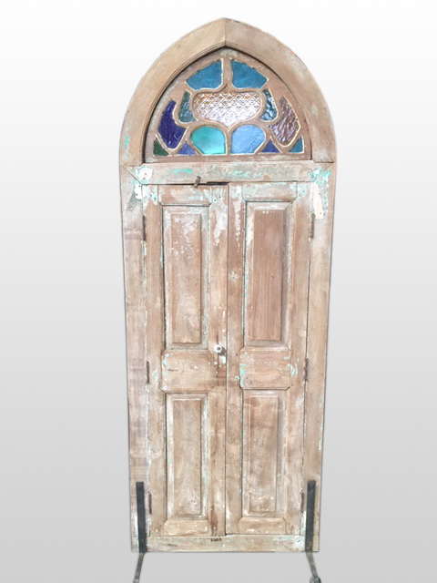 Alte Hartholztür im Kolonialstil mit Glasmalerei, sehr schön!