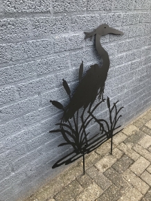 Lieferumfang: 1x Gartenstab Reiher-Silhouette mit Stiften, Metall