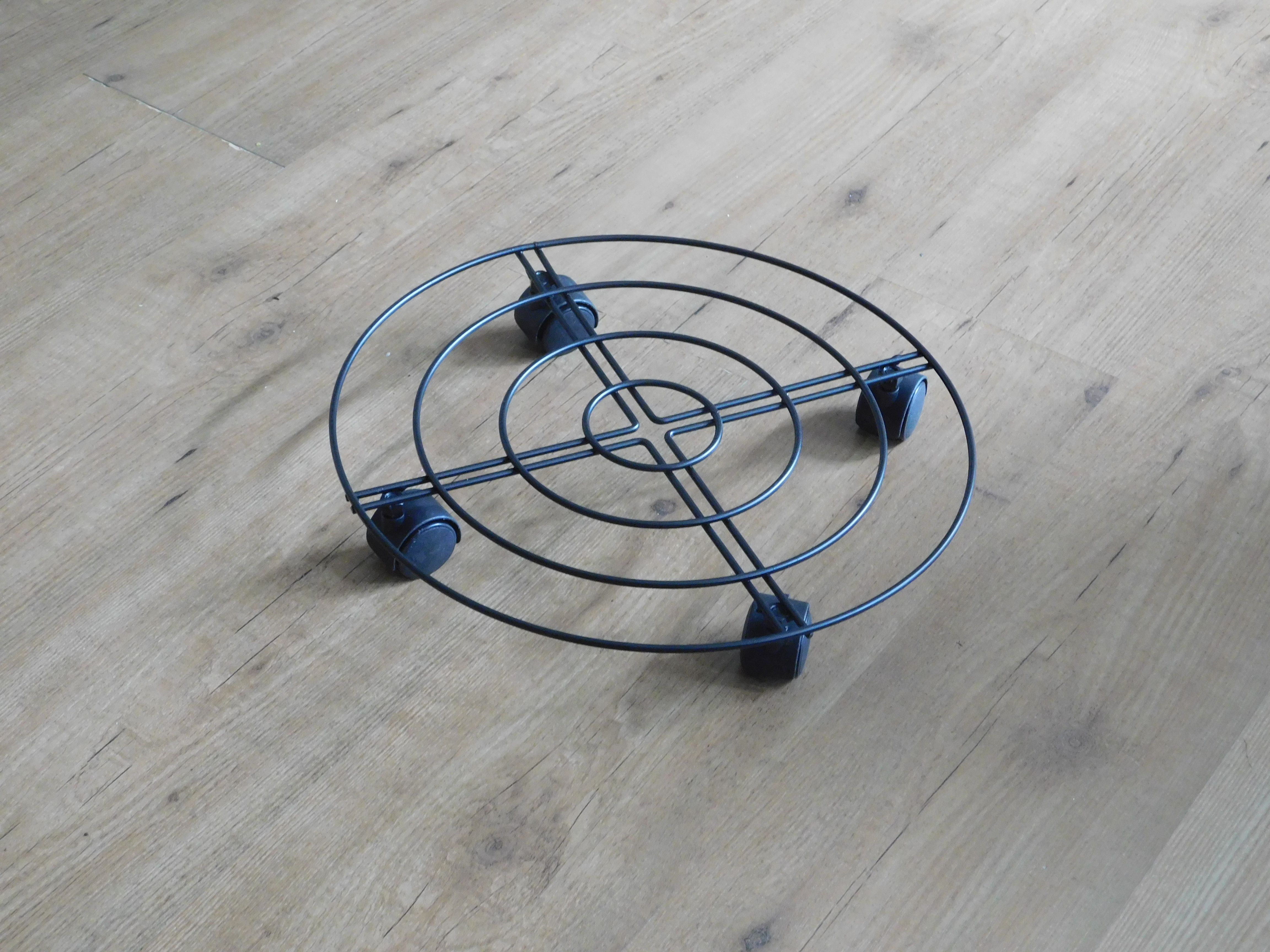 Dieser runde Metall-Pflanzenwagen mit vier Lenkrollen eignet sich perfekt für den Transport schwerer Pflanzgefäße oder Pflanzen.