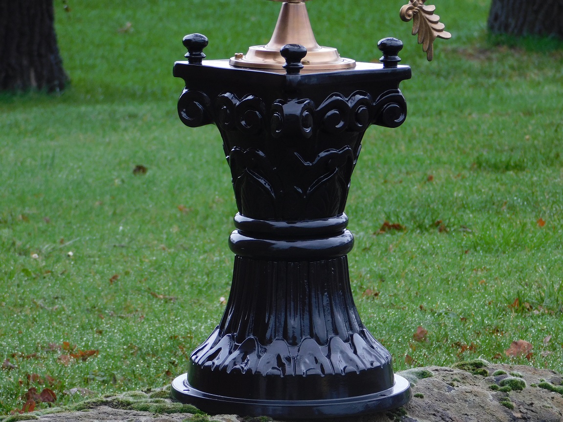 Diese Sonnenuhr steht auf einem formschönen Aluminiumsockel in schwarzer Pulverbeschichtung.