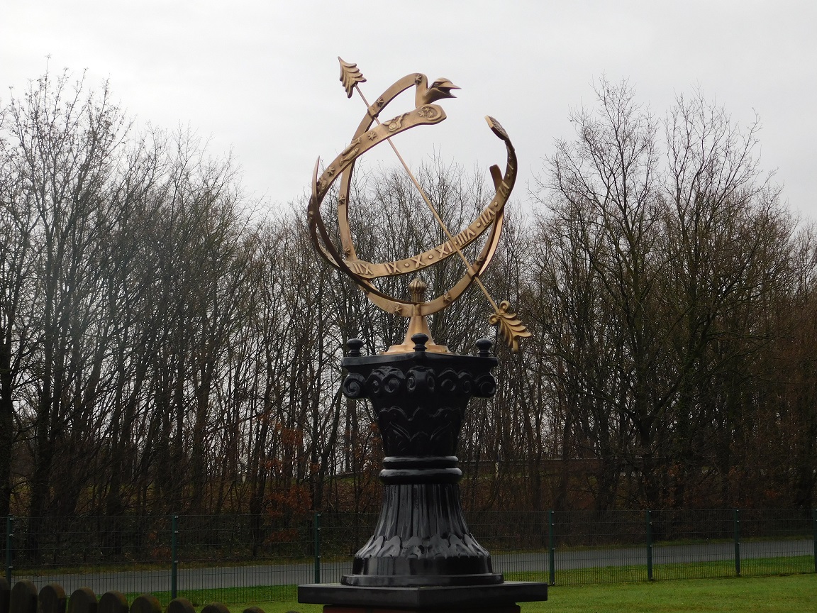 Besondere Sonnenuhr aus Messing mit Sternbildanzeige und römischen Ziffern, schönes Design.