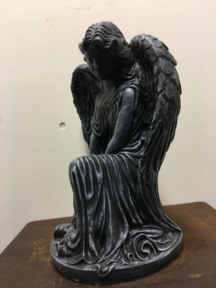 Engel kniend, schöne dunkle Farben, voller Steine, schwere Statue.