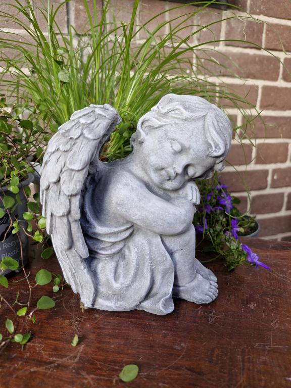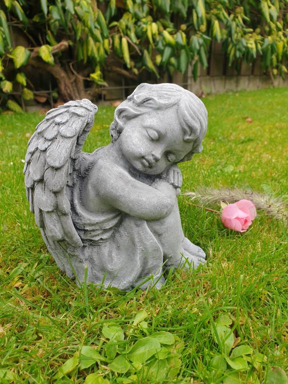 Dieser bescheidene, ruhig sitzende Engel, gegossen