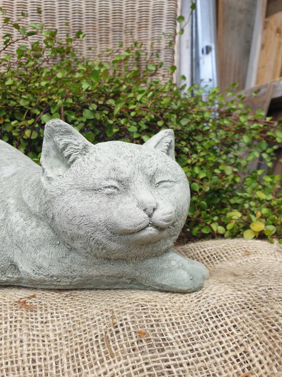Diese fröhliche fröhliche Katze ist eine tolle Dekoration auf einer großen Fensterbank oder in einem Blumenbeet oder Balkon.
