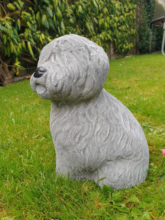 Gartenstatue eines Hündchens (Schapendoes)