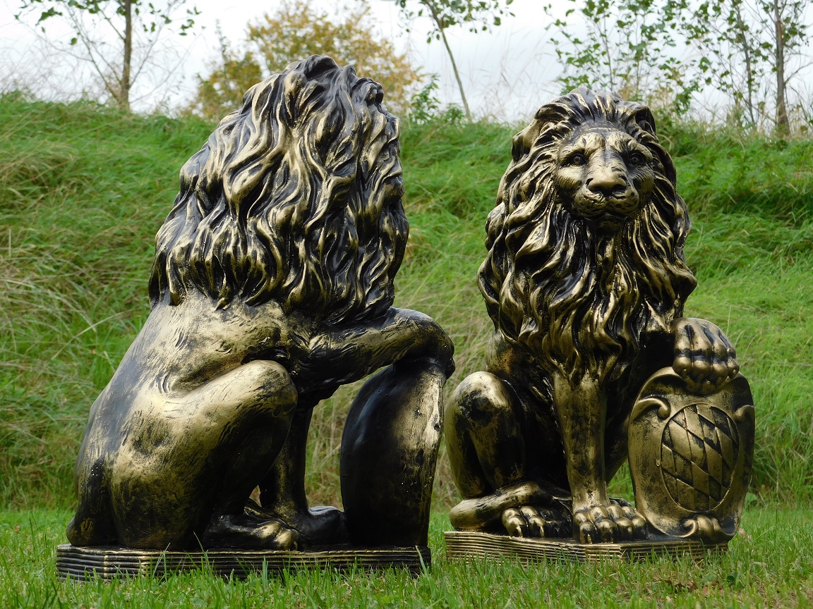 Lieferumfang: 1x Set aus 2 Löwen – schwarz/gold – Poly