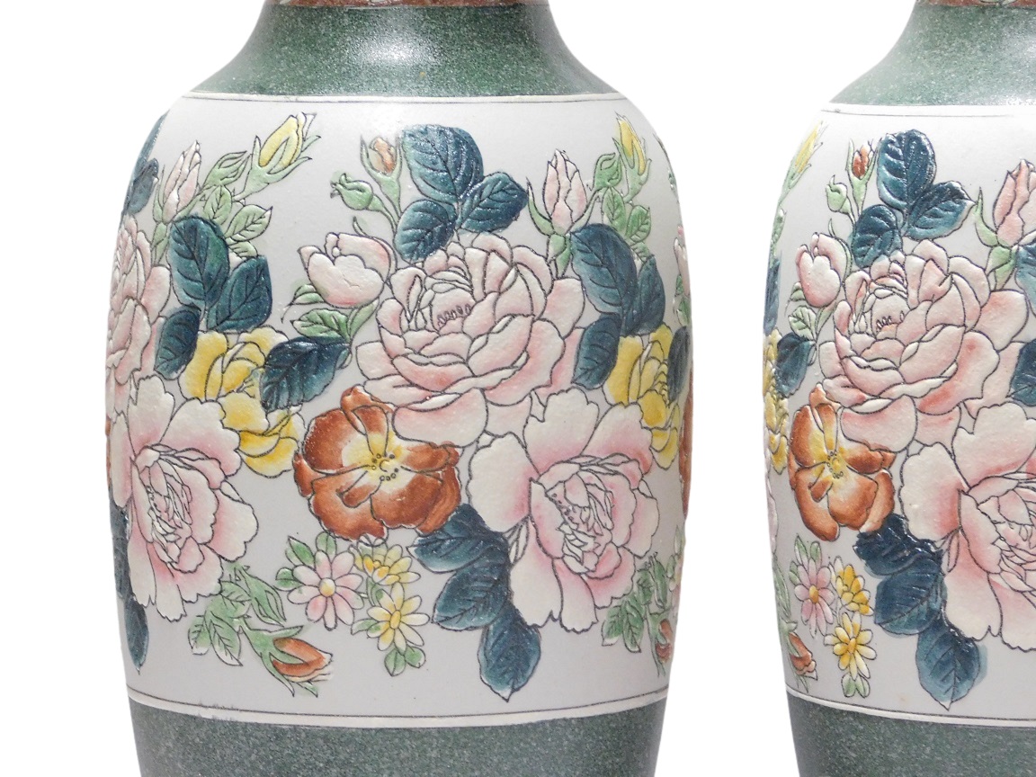 Diese besonderen Vasen sind reich mit raffinierten Blumenmotiven verziert und strahlen eine authentische, zeitlose Schönheit aus, die man in der modernen Massenproduktion nicht findet.