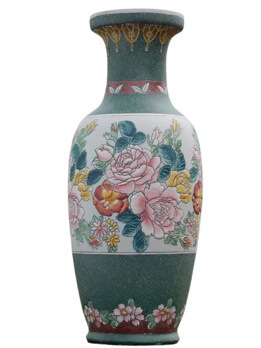 2er-Set großer Vintage Asiatischer Ziervasen mit Blumenmuster – ca. 60 cm – Keramik