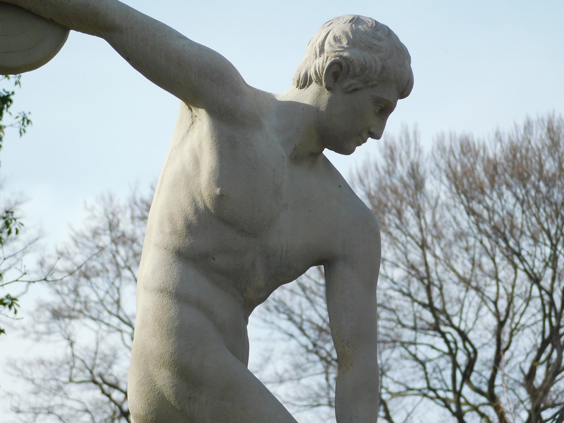 Da nur ein Exemplar verfügbar ist, bietet sich hier eine seltene Gelegenheit für Liebhaber einzigartiger und imposanter Objekte. XL-Diskuswerfer auf Sockel