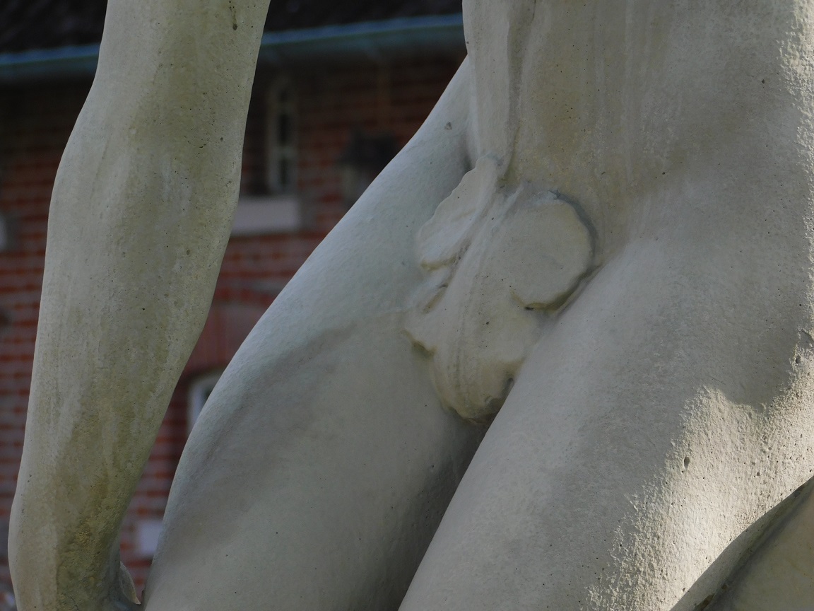 Die natürliche Alterung des Kunststeins verleiht der Skulptur Charakter, Tiefe und eine exklusive Ausstrahlung.