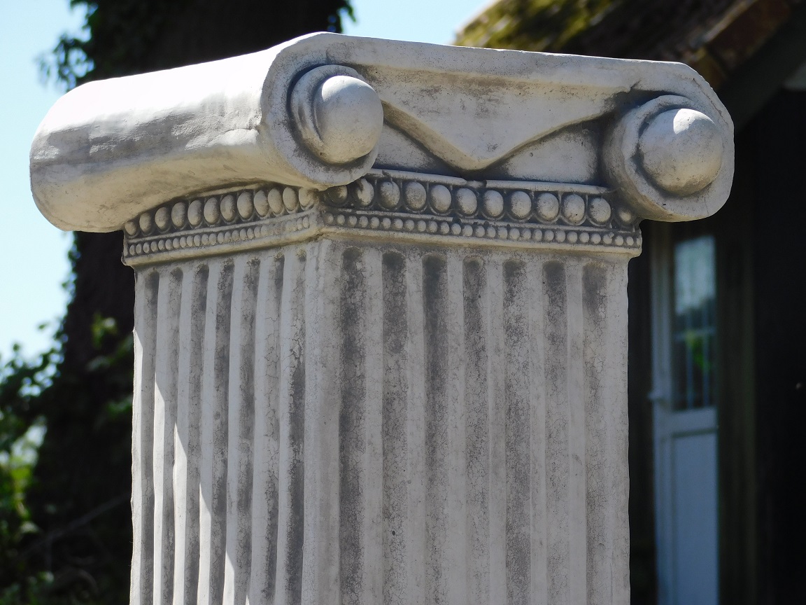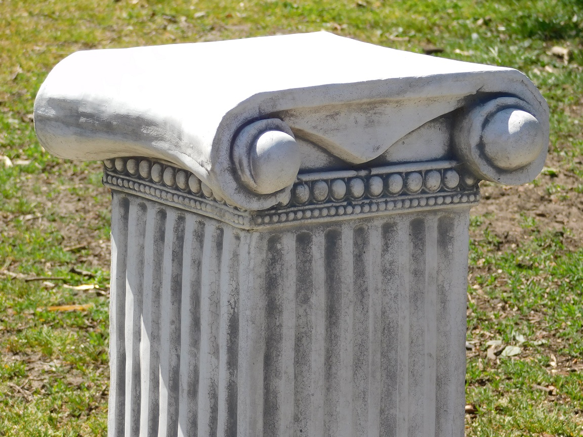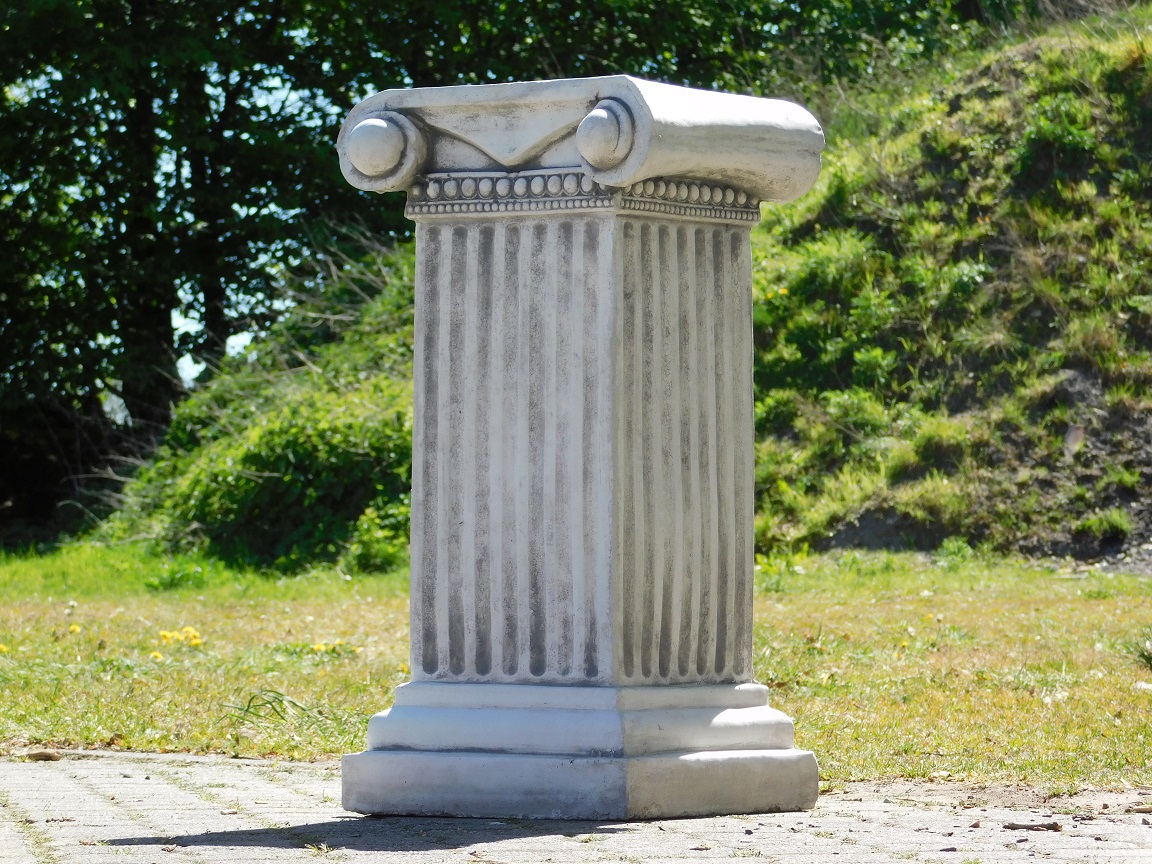 Präsentieren Sie Ihre Statuen, Vasen oder Ornamente eindrucksvoll auf diesem wunderschönen klassischen Sockel im ionischen Stil, gefertigt aus massivem Stein.