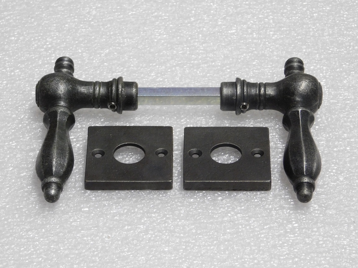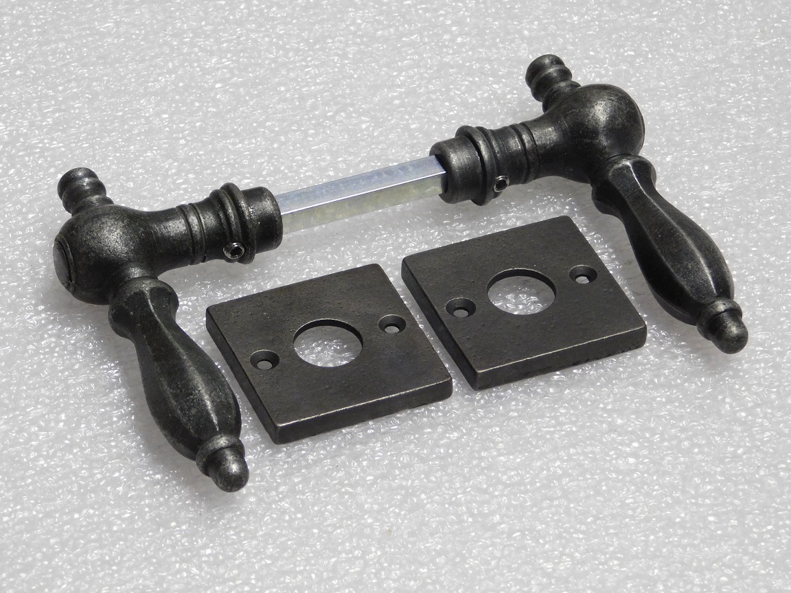 Set: Kensington-Türgriffe + quadratische Türgriffrosetten – verzinktes Gusseisen