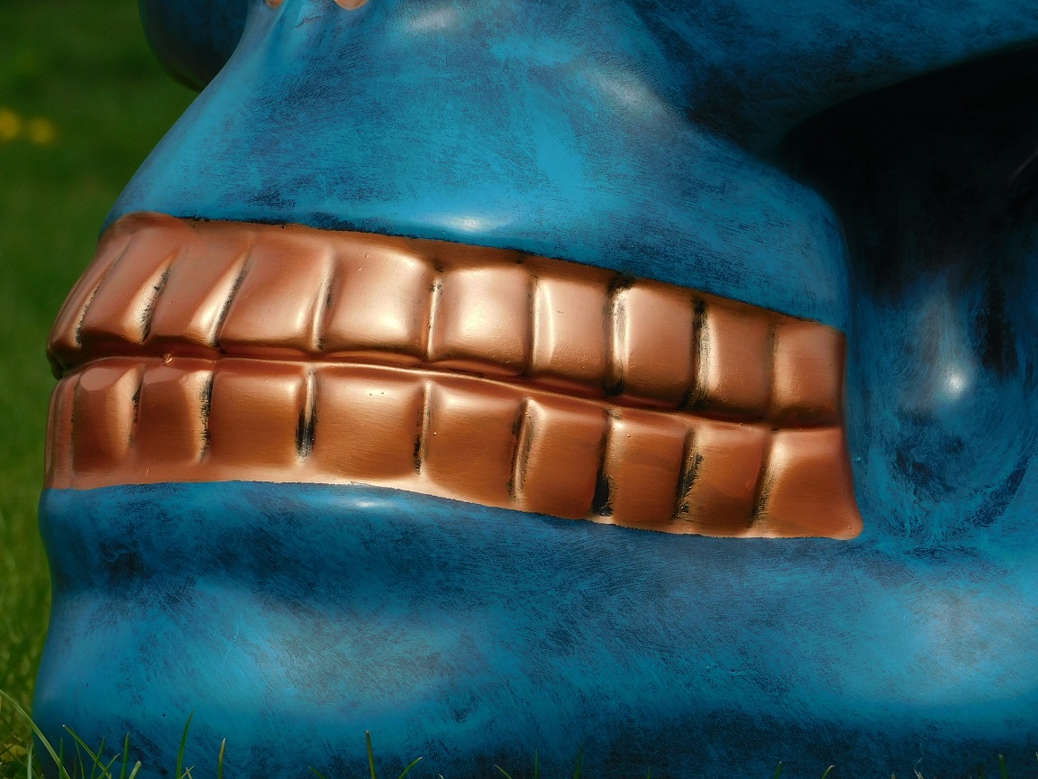 Skull XL – 60 x 65 cm – Blau mit Bronze – Polystone