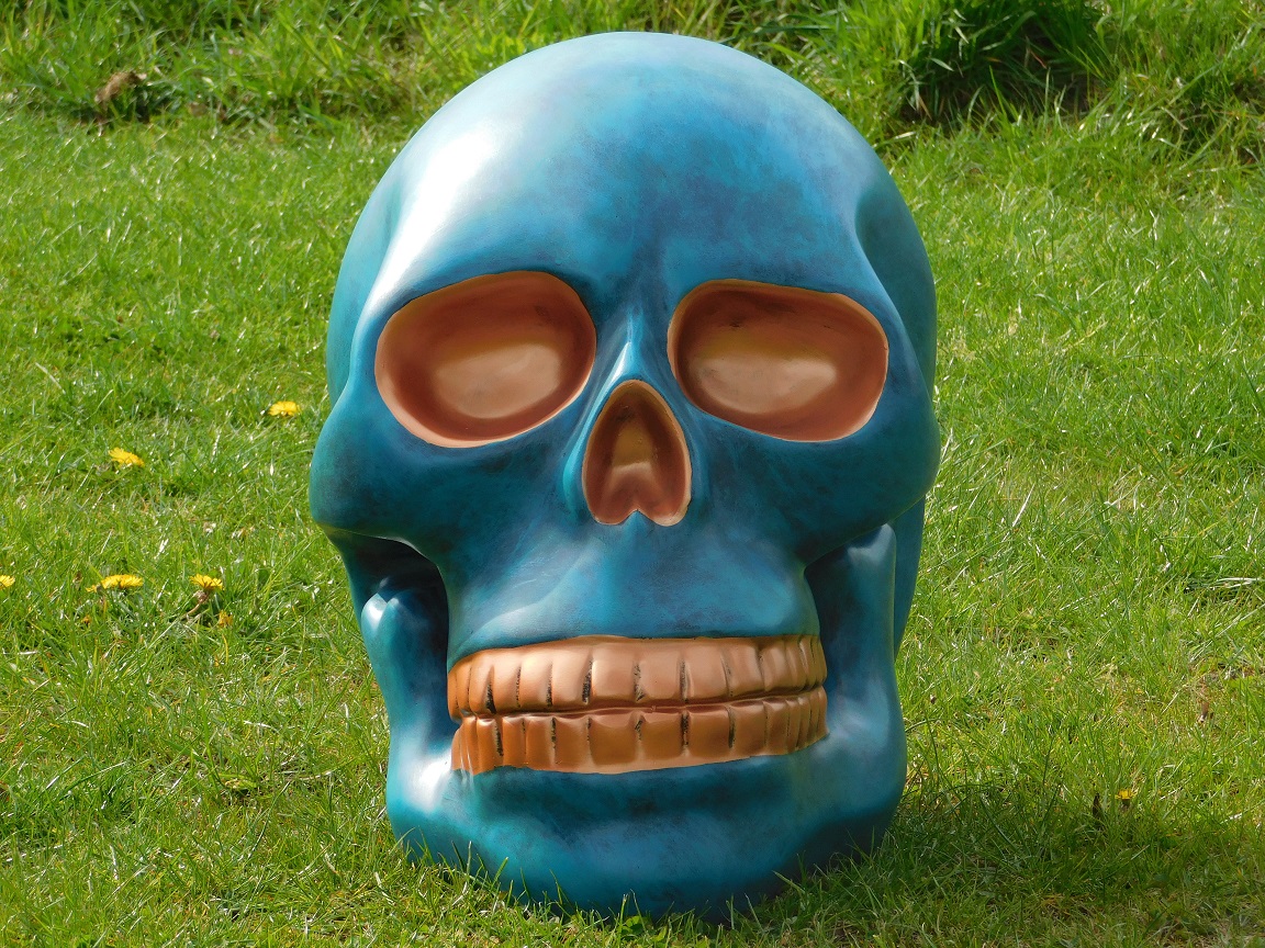 Lieferumfang: 1x Totenkopf XL, blau, Polystone