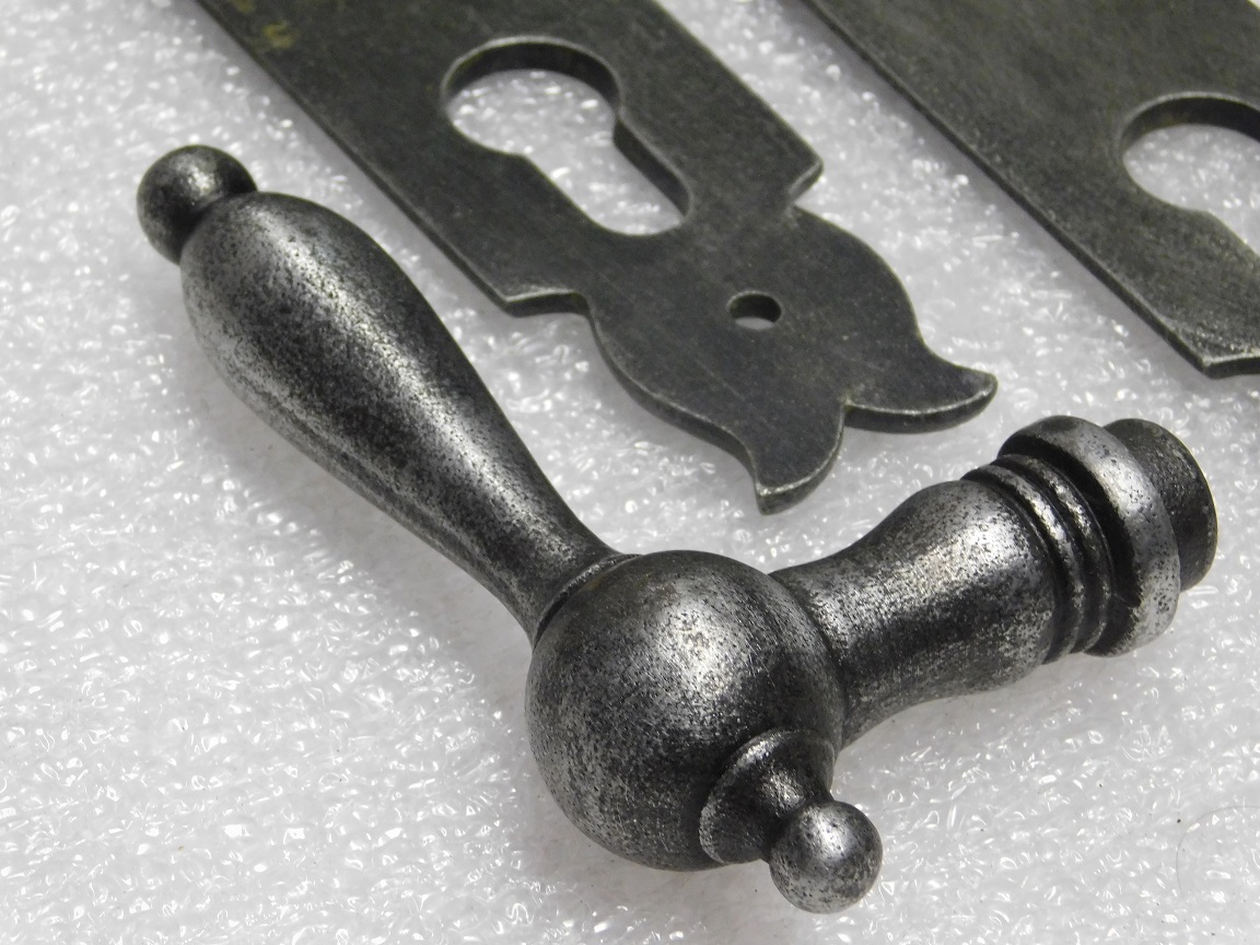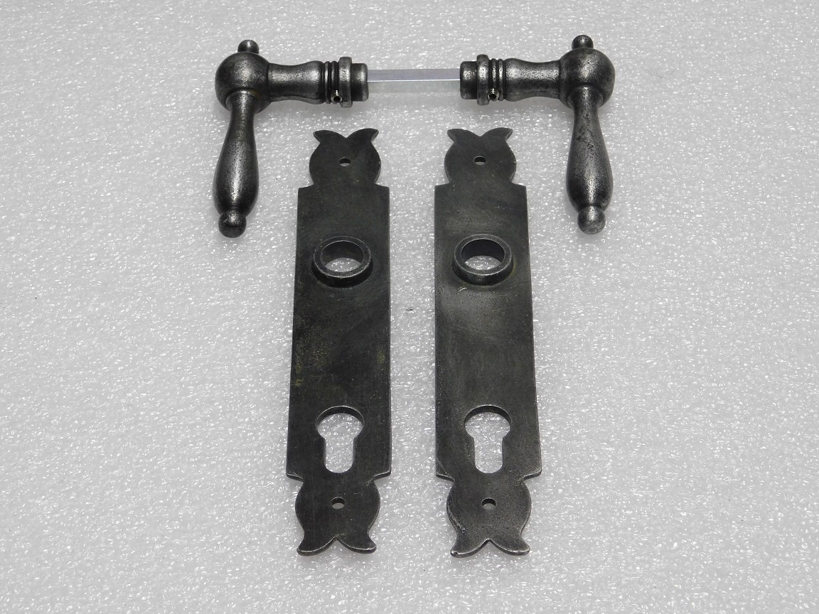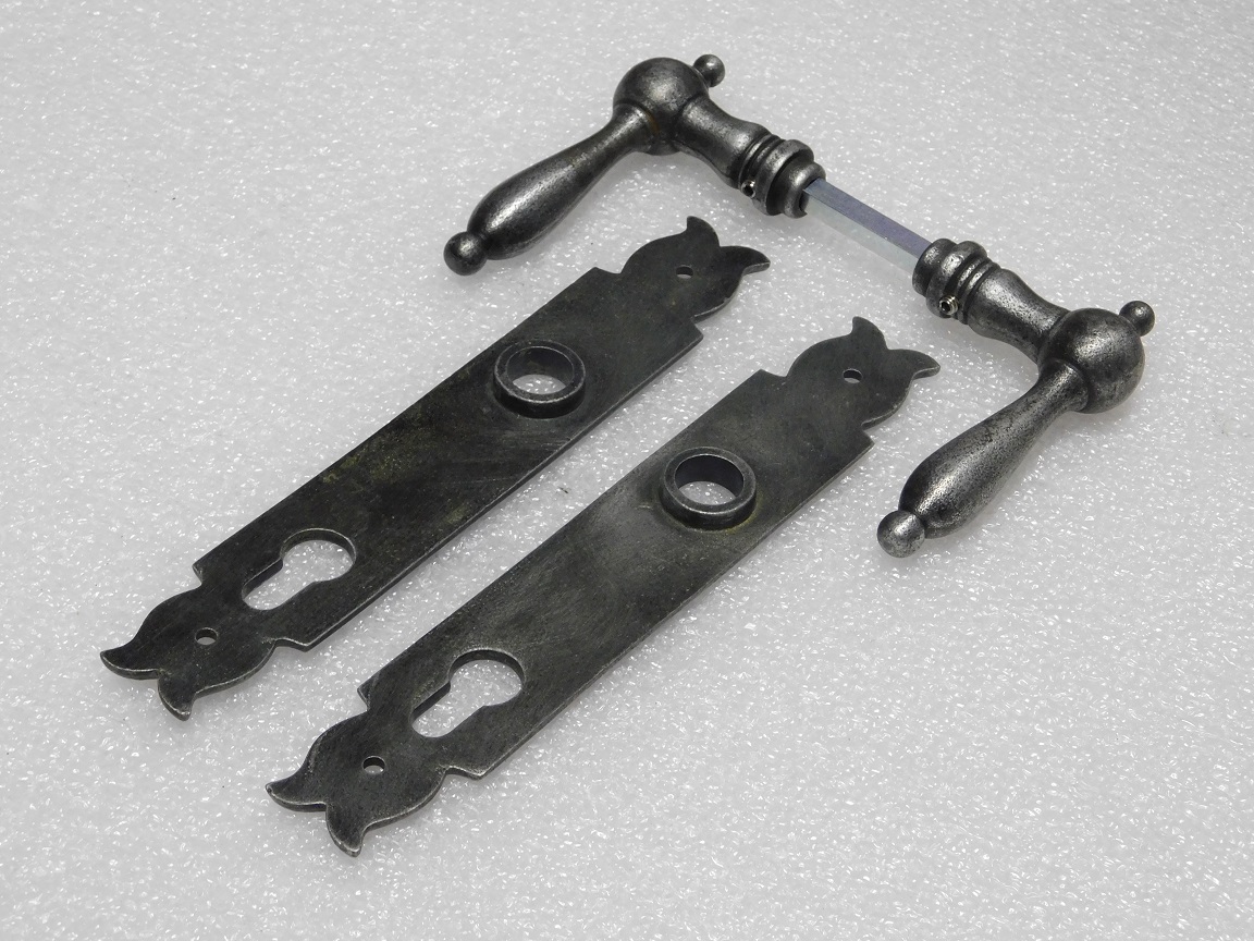 Türbeschlagset – Türgriffe Cambridge + Türschilder Noble PC 92 – Verzinktes Gusseisen