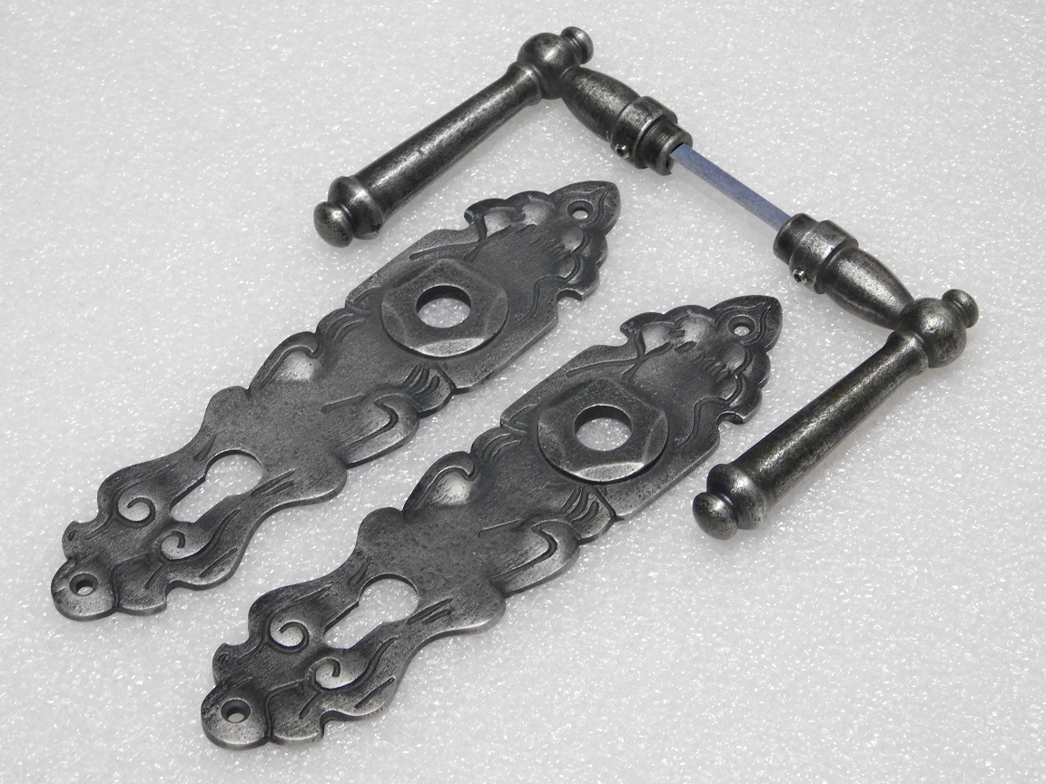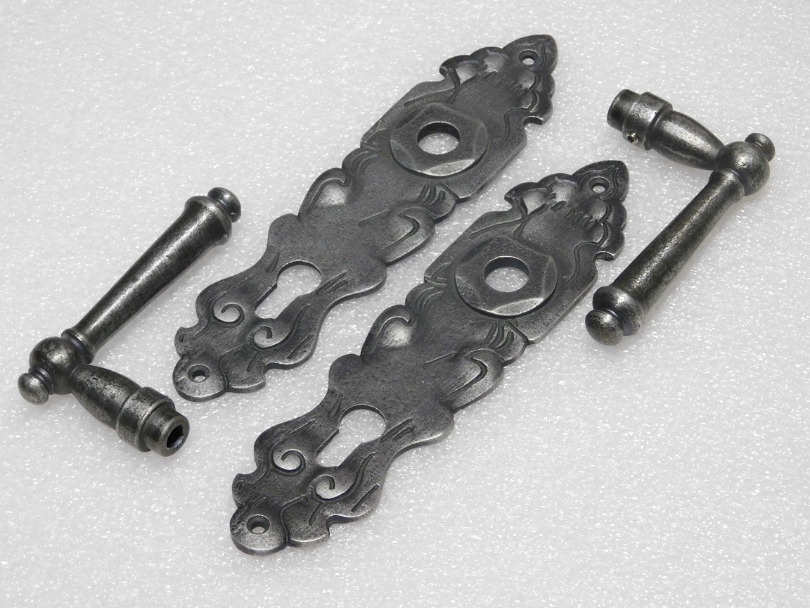 Türbeschlagset – Windsor-Türgriffe + Royale-Türschilder PC 92 – Verzinktes Gusseisen