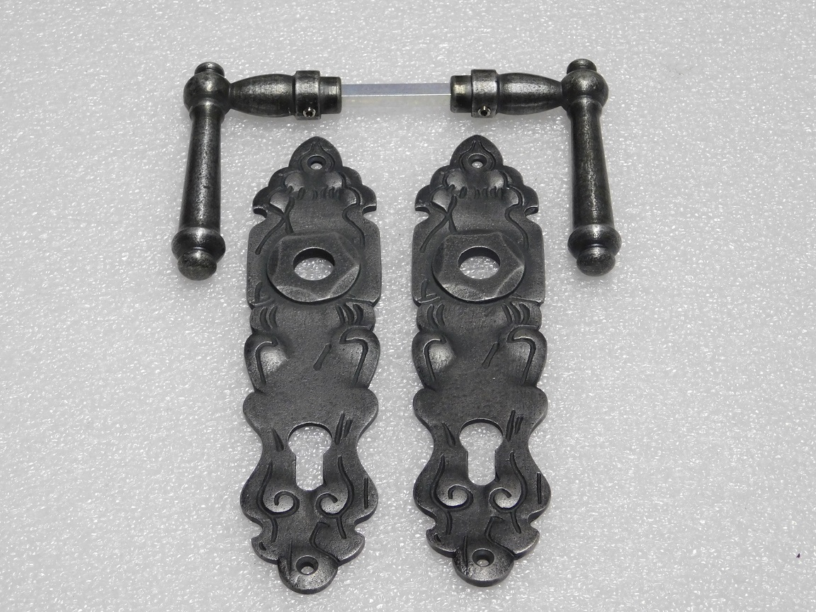 Türbeschlagset – Türgriffe Windsor + Türschilder Royale PZ 92 – Gusseisen, verzinkt