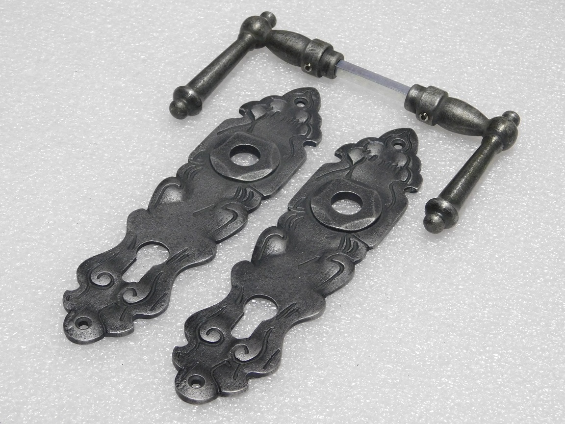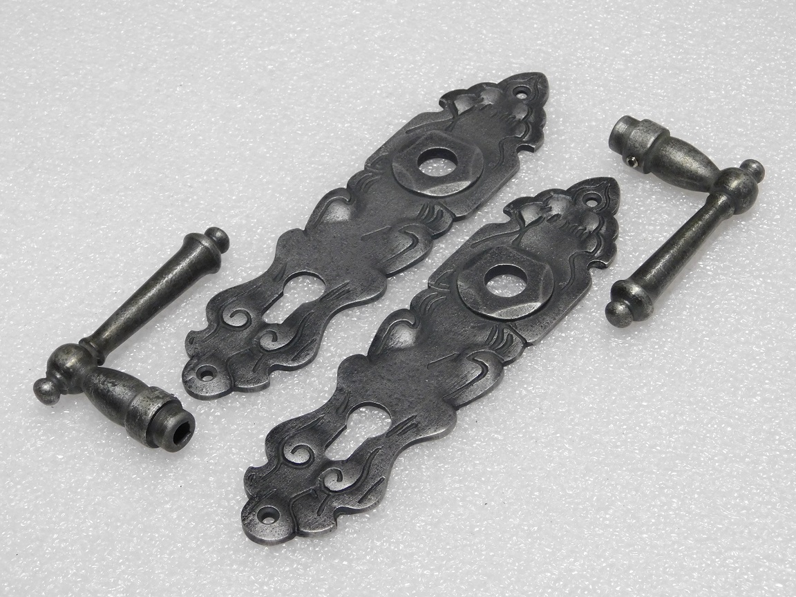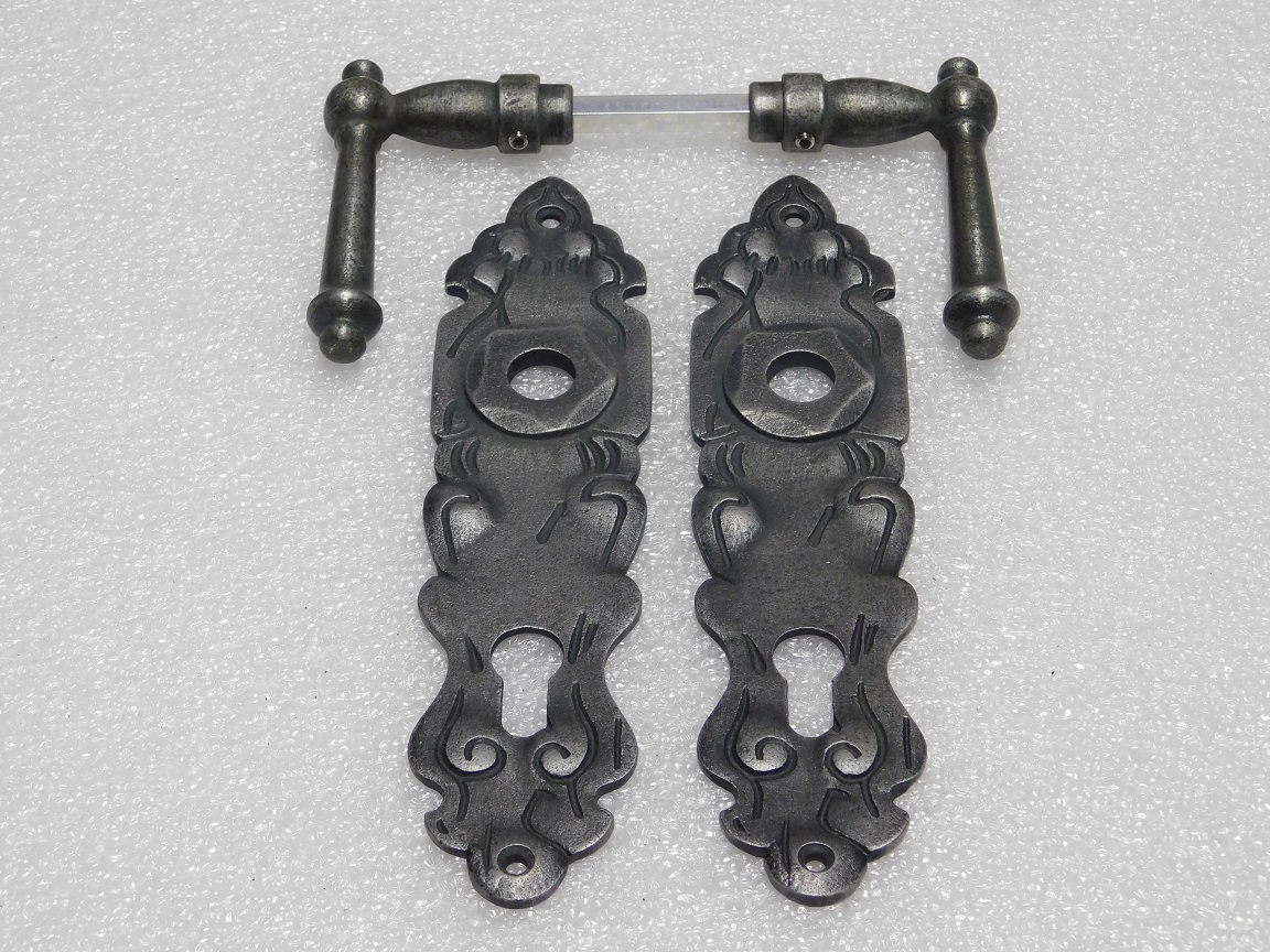 Türbeschlagset – Türgriffe York + Türschilder Royale PZ 92 – Verzinktes Gusseisen