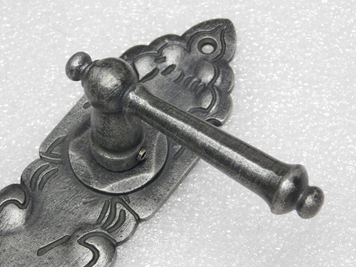 Das verzinkte Gusseisen garantiert eine starke, langlebige und verschleißfeste Oberfläche mit einer robusten Ausstrahlung und einem dezent verwitterten, authentischen Look, der den Charakter der Türbeschläge unterstreicht.