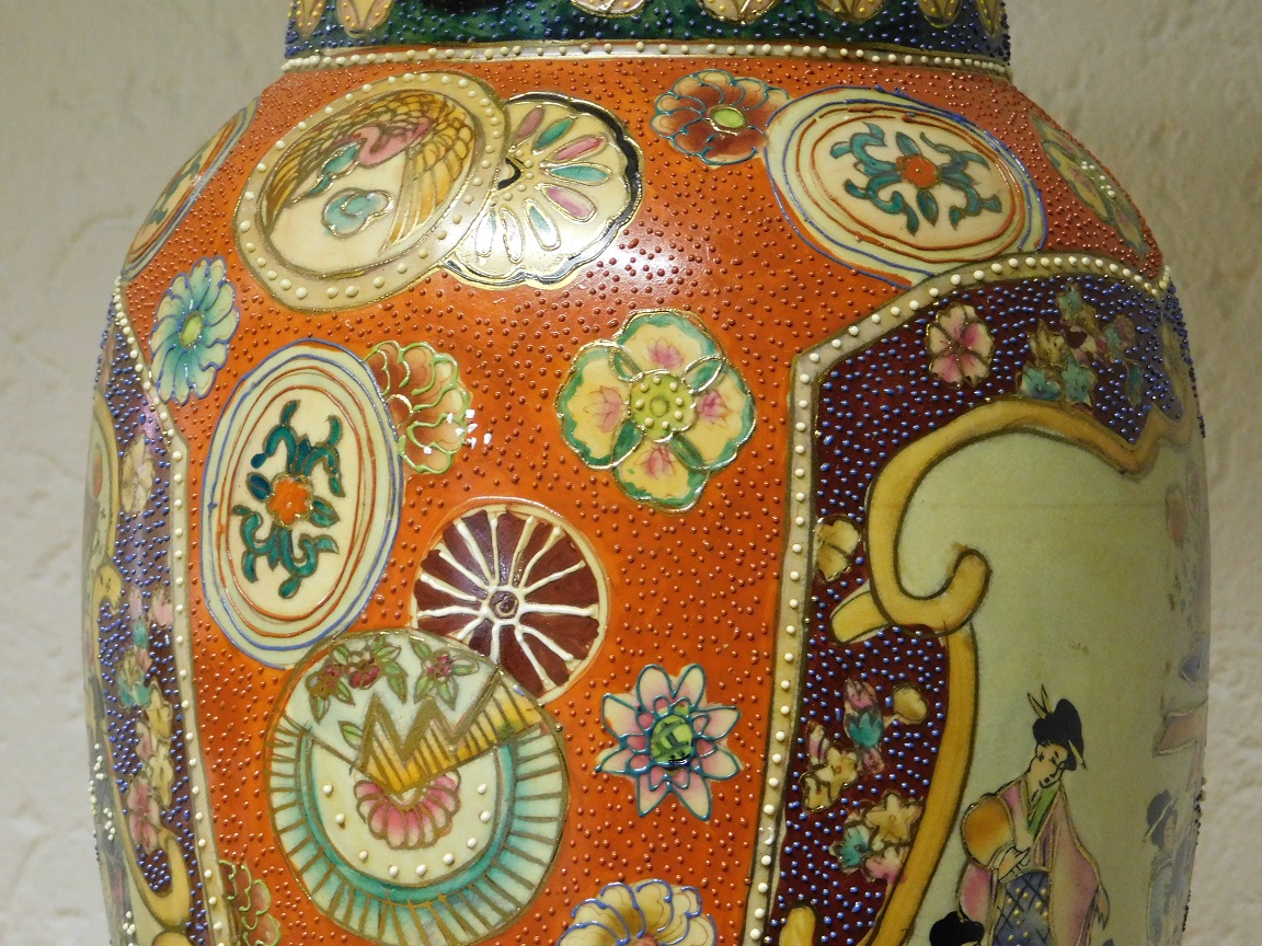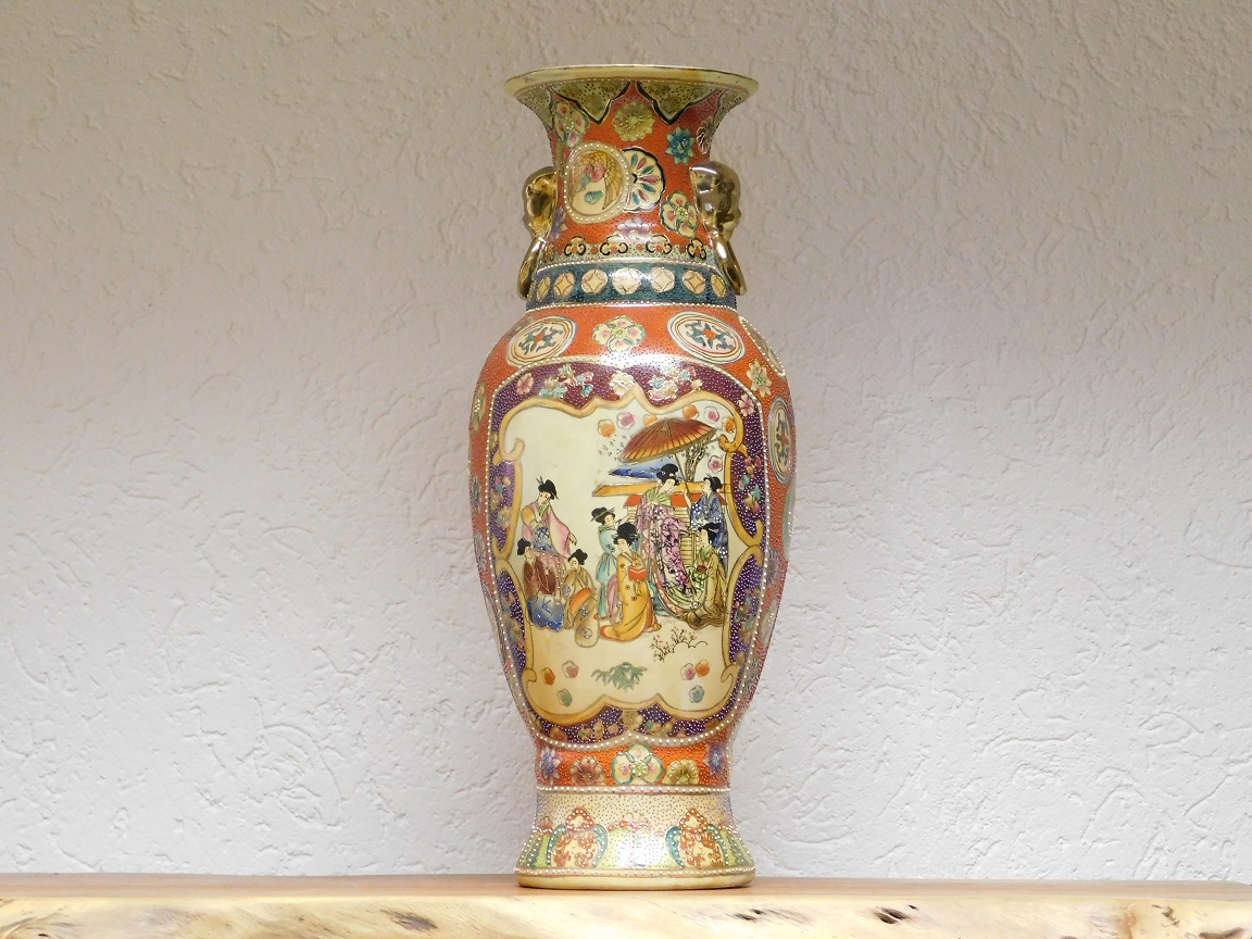 Vintage-Vase – 62 cm – japanischer Satsuma-Stil – handbemaltes Porzellan