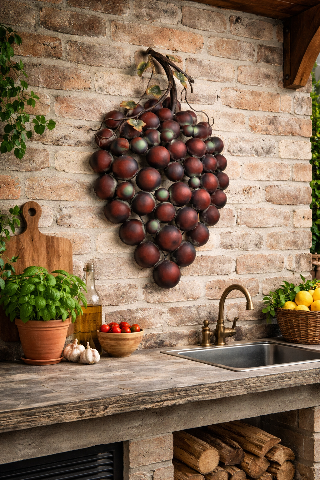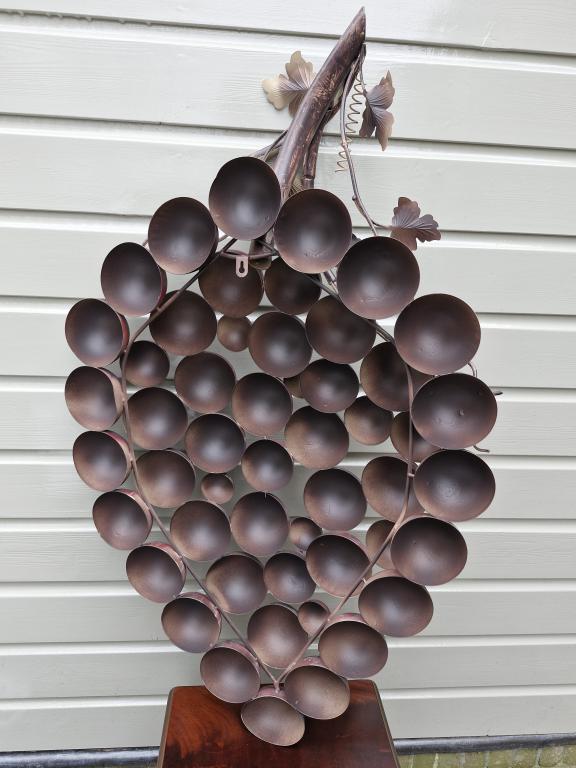 Verleihen Sie Ihrem Zuhause mit dieser beeindruckenden Wanddekoration aus Metall in Form einer großen Weintraube ein warmes, mediterranes Flair.