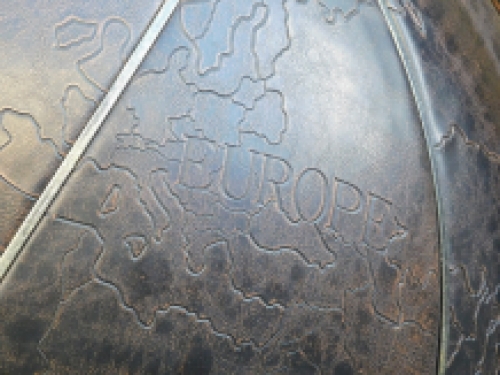Schöner klassisch aussehender Globus auf Metallständer, der grob die Landmasse mit Schiffen abbildet. Ein Blick nicht nur auf die Welt, sondern auch auf die Geschichte.