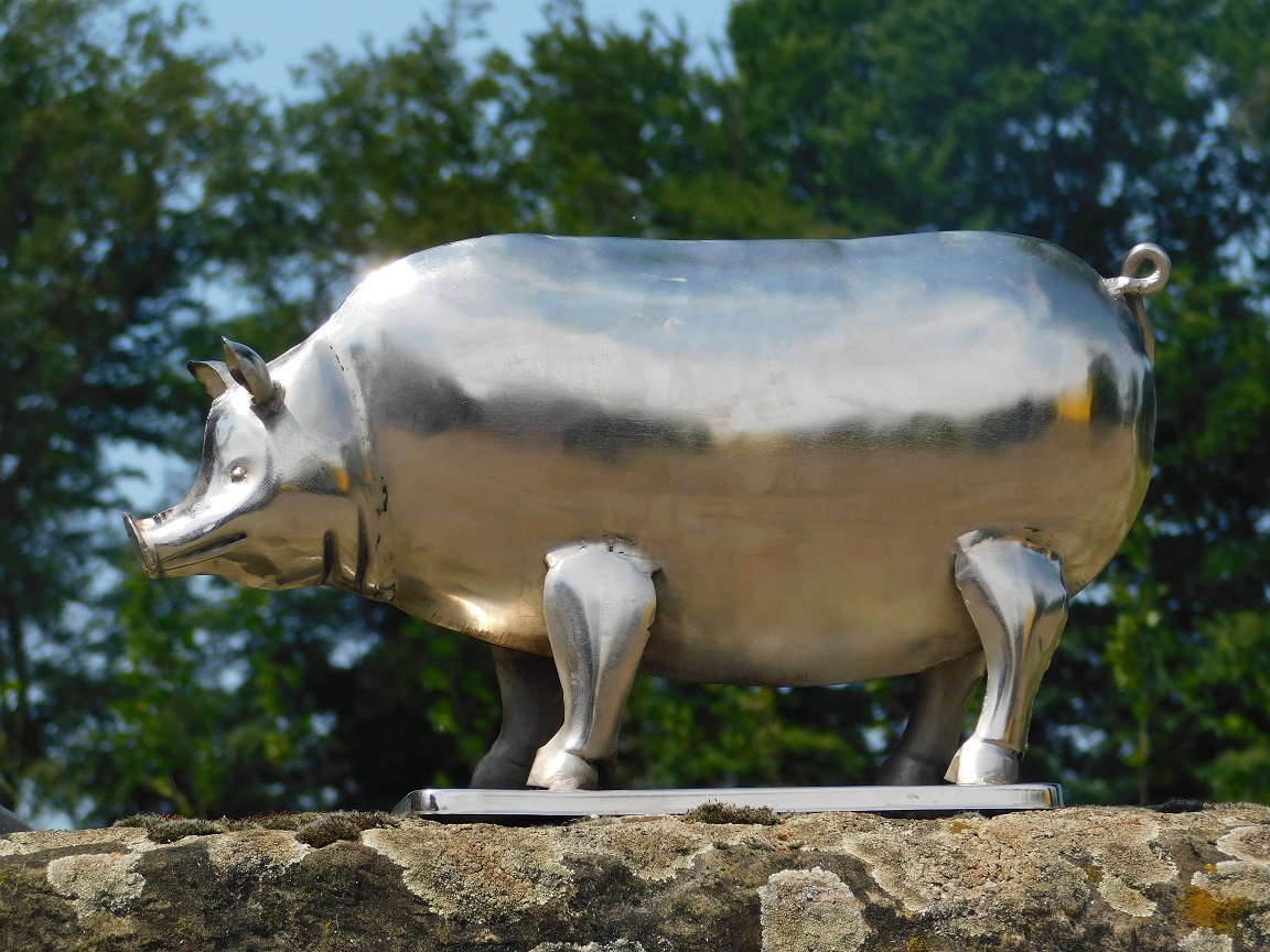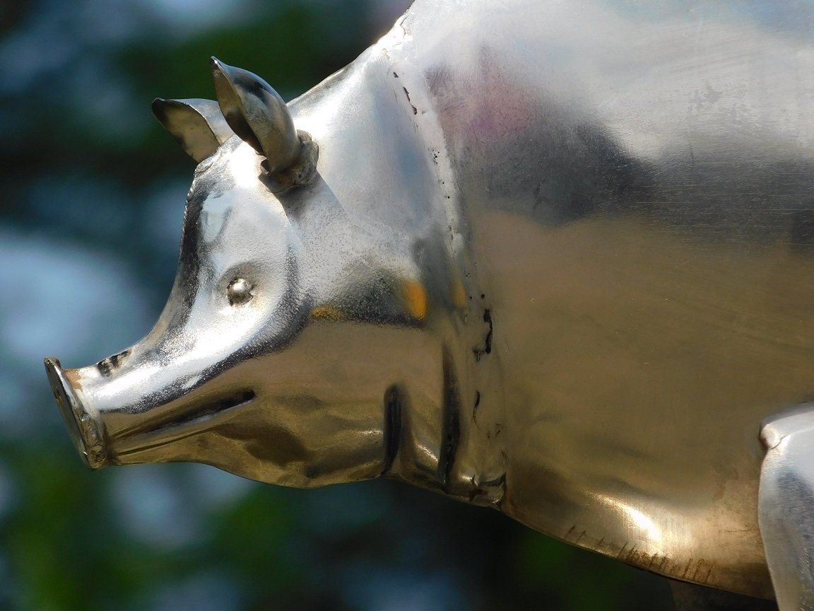 Das detaillierte Design und die Verwendung der Farbe Chrom verleihen dem Schwein einen modernen und einzigartigen Charakter.