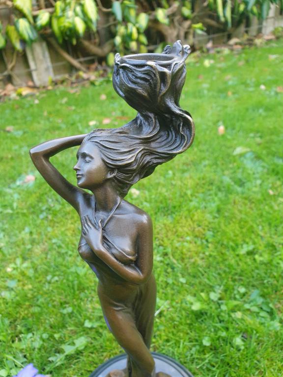 Dieser wunderschöne Jugendstil-/Art Noveau-Kerzenständer aus Bronze wird Ihren Raum überall aufwerten, wo Sie ihn platzieren.