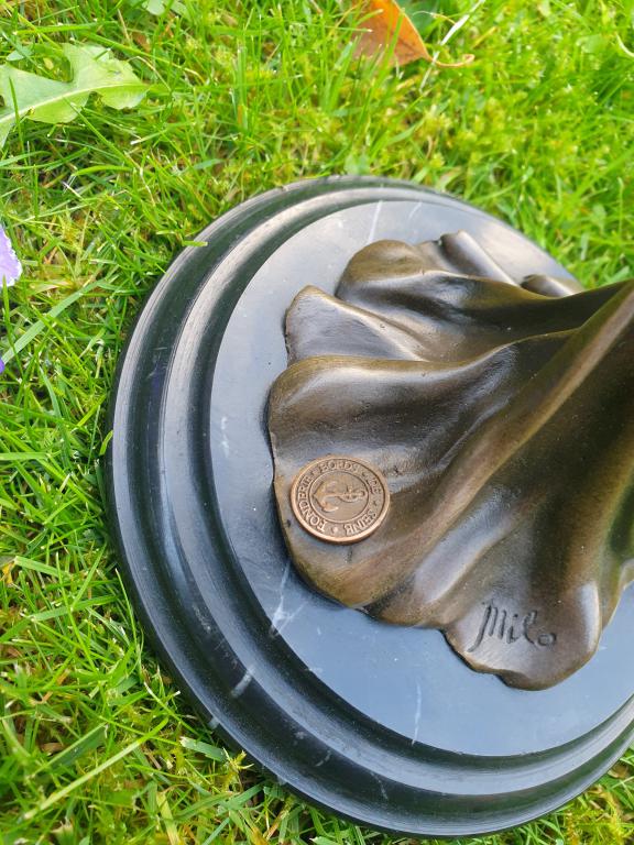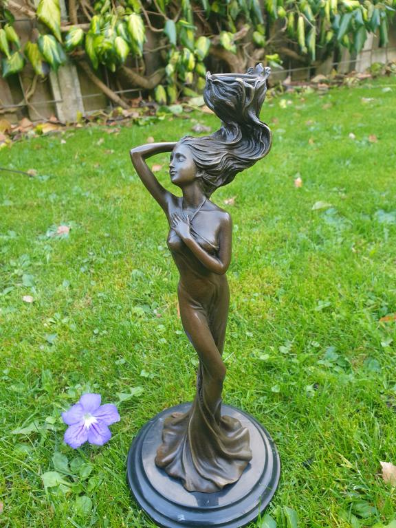 Die elegante Dame steht auf einem runden Marmorsockel.