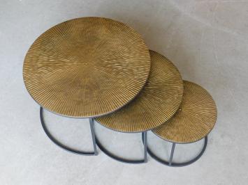 Satz von 3 Tischen - rund - gold mit schwarzem metalen Fuß