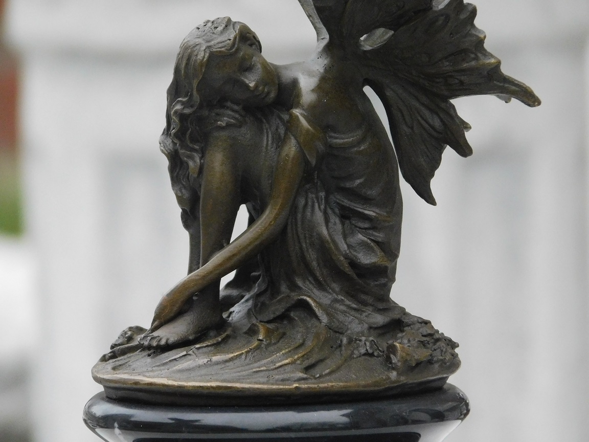 Bronzestatue - schlafende Elfe - Marmorsockel