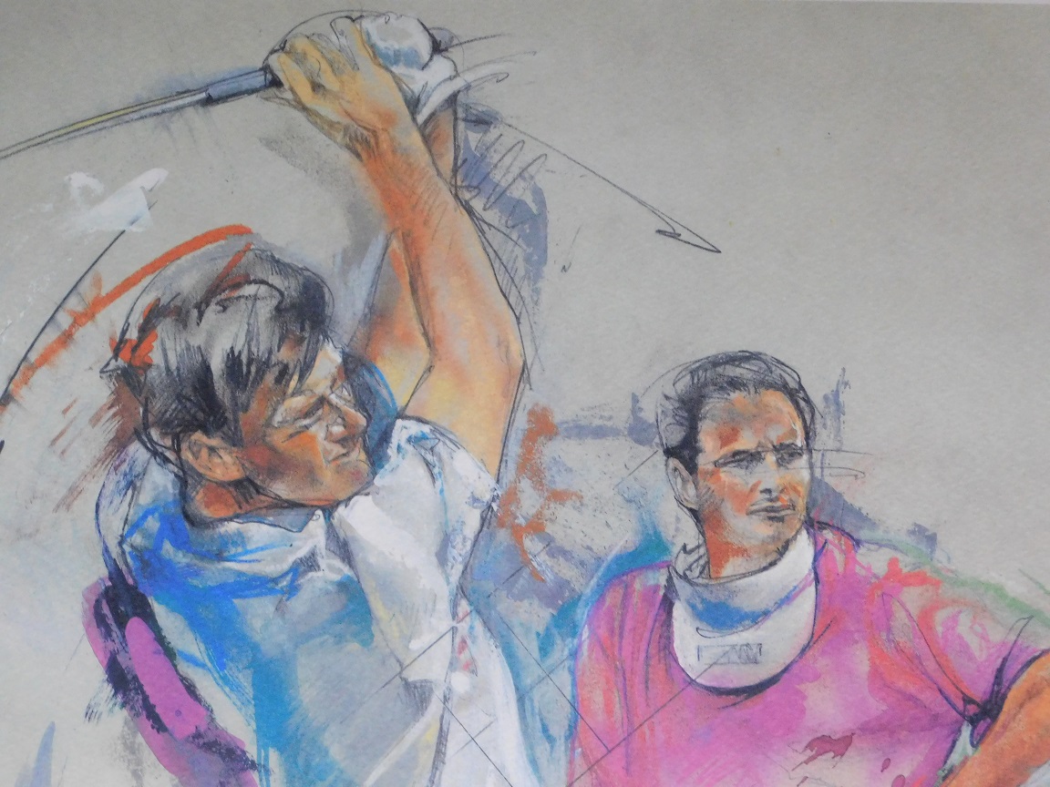 Mit einem Auge für Details und einem Sinn für Bewegung erweckt Twan V. die Leidenschaft für den Golfsport in dieser künstlerischen Szene zum Leben.
