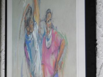 Gemälde mit Golfspielern - Von Twan V 1989 - Signiert - Inklusive Rahmen