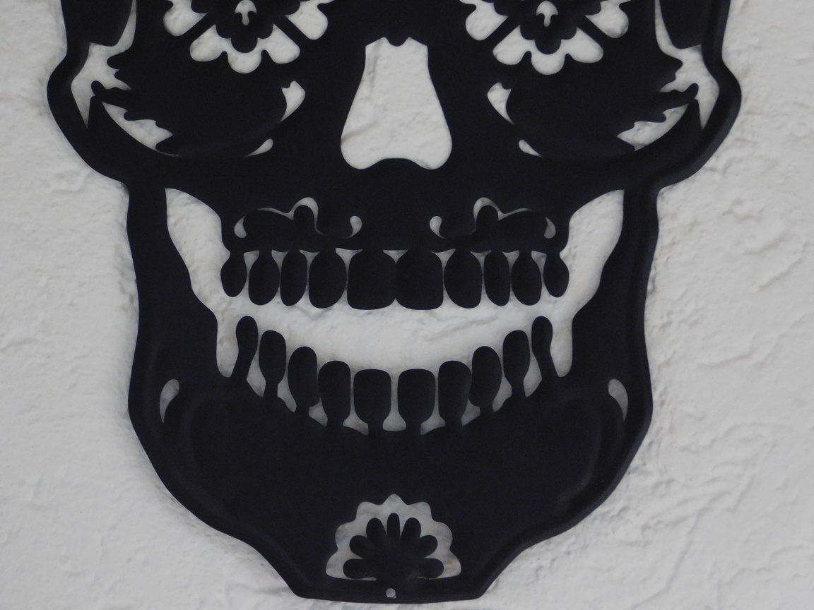 Wandschild Totenkopf - 40 cm - Mattschwarz - Metall