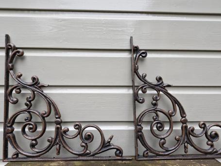 Wunderschönes Set großer Regalwinkel aus Gusseisen, rustikal braun.