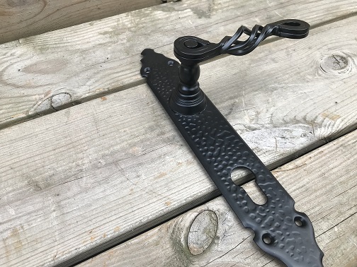 Schöne Halbgarnitur aus Schmiedeeisen! In Schwarz passt diese Halbgarnitur an viele Türen und wird ein echter Blickfang für Ihr Haus.