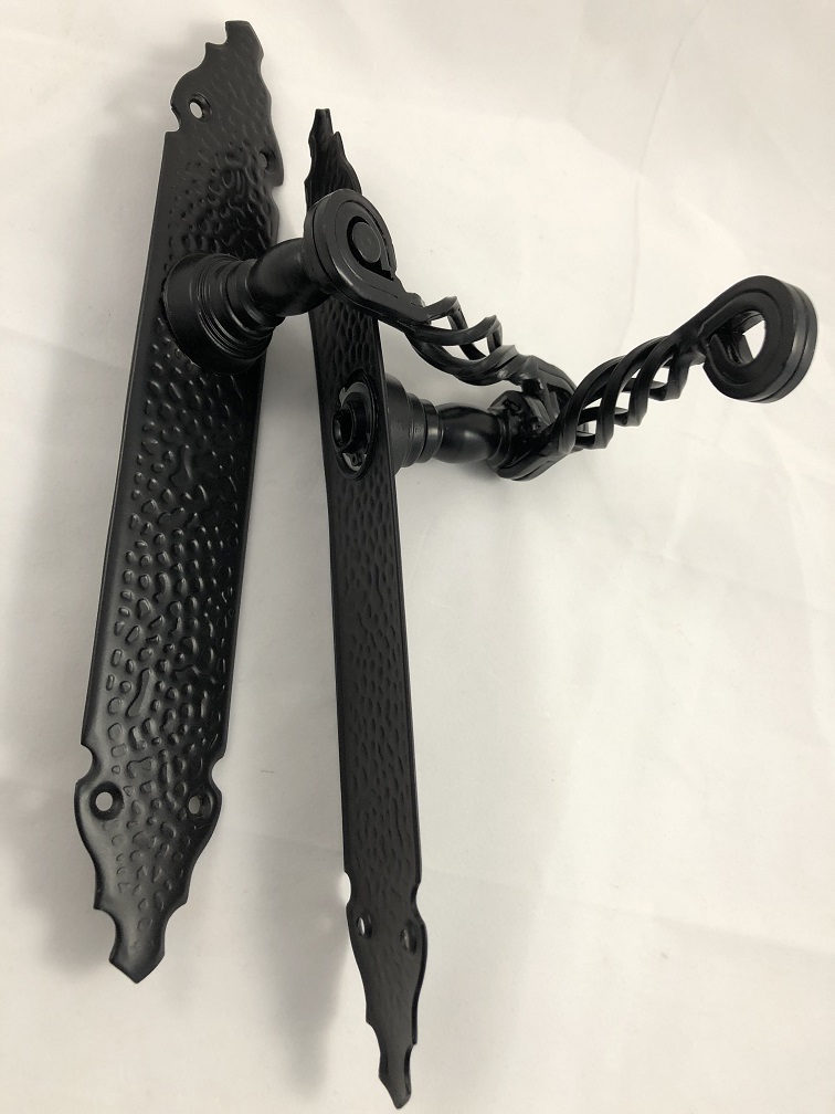 Satz Türbeschläge für die Haustür, schönes Schmiedeeisen, schwarz, geschlossenes Türschild
