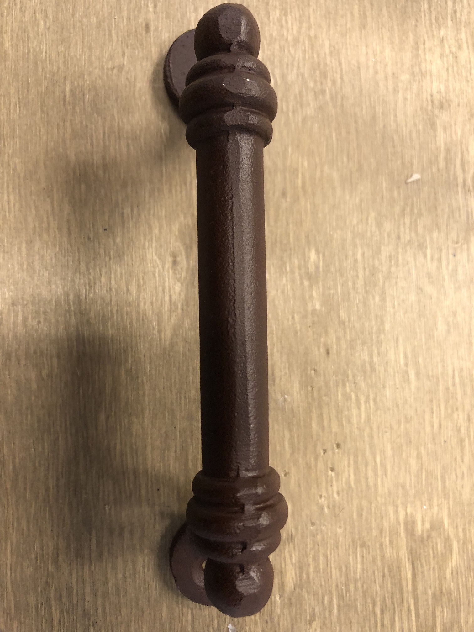 Handvat, deurgreep, meubelbeslag van ijzer in roest kleur.