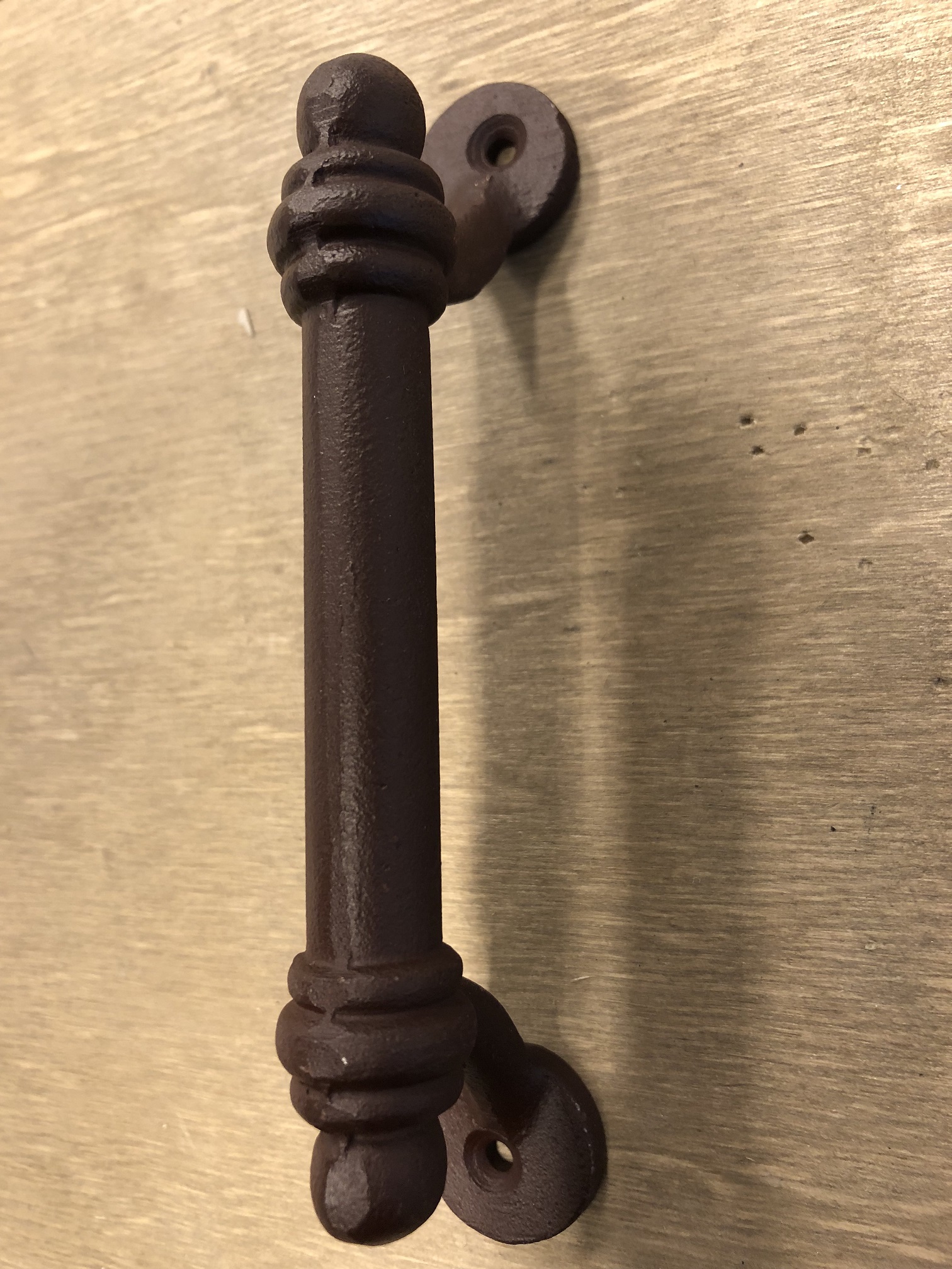 Prachtig gevormd handvat van massief ijzer, kleur is antiek-rust-look.
