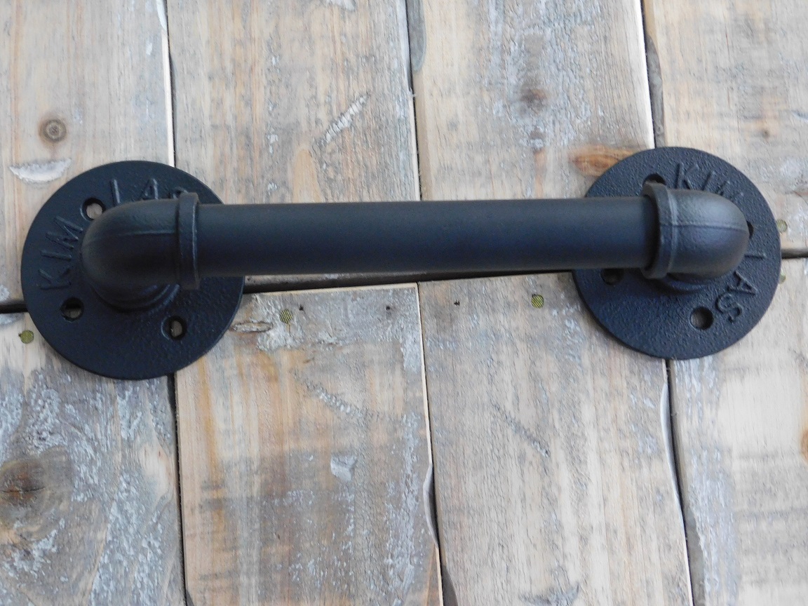 Prachtige industriële deurgreep, steigerbuis greep, ijzer zwart modern, zeer fraai.