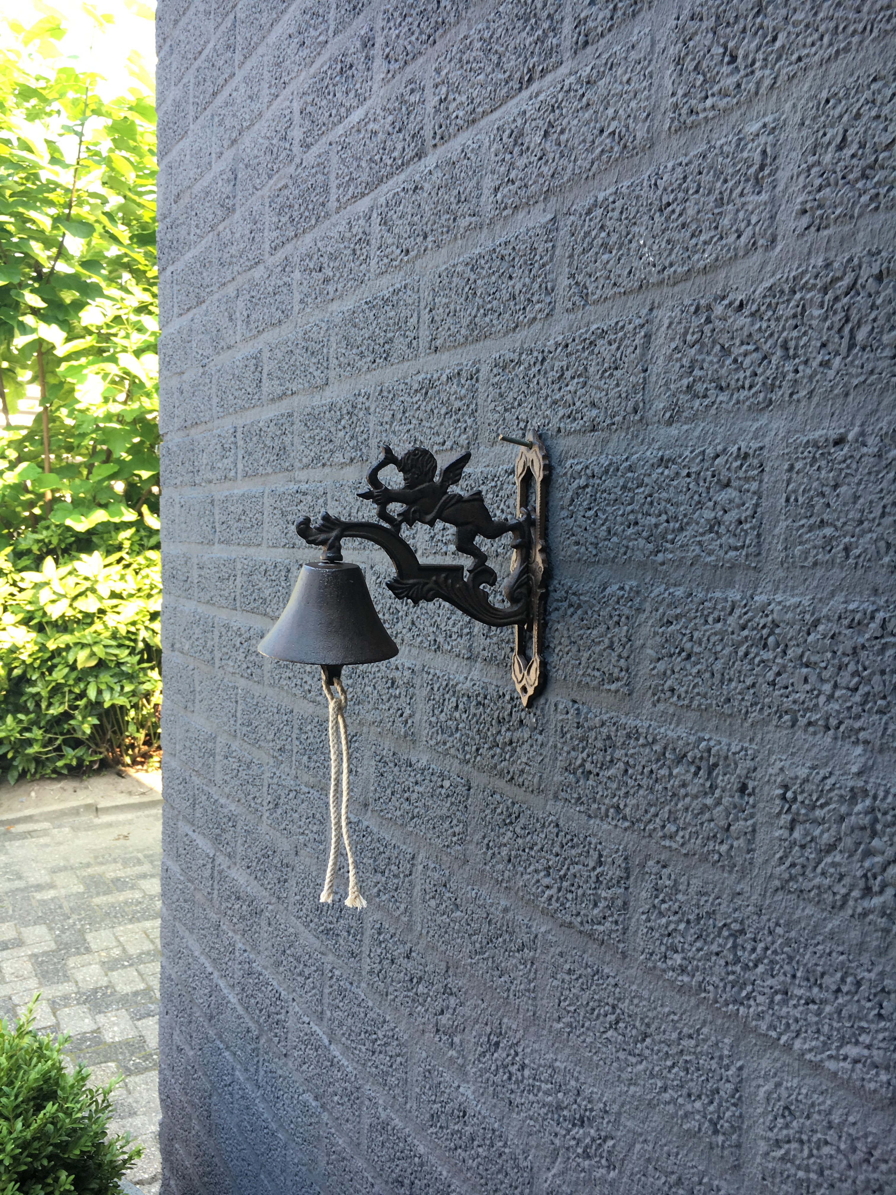 Deze deurbel is gemaakt van gietijzer en is weerbestendig.