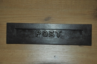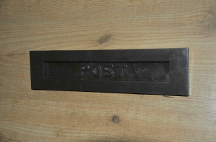 Briefgleuf ijzer donkerbruin, zware degelijke uitvoering, met klepveer.