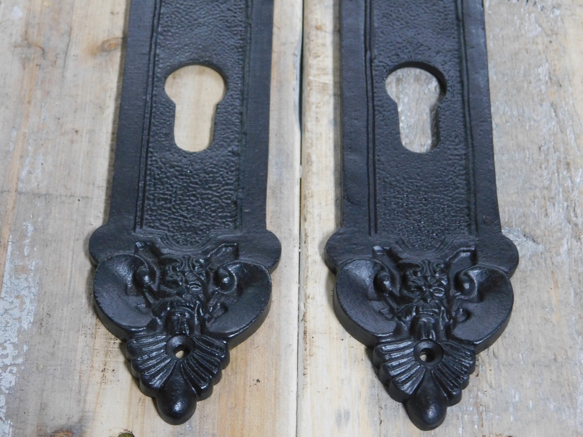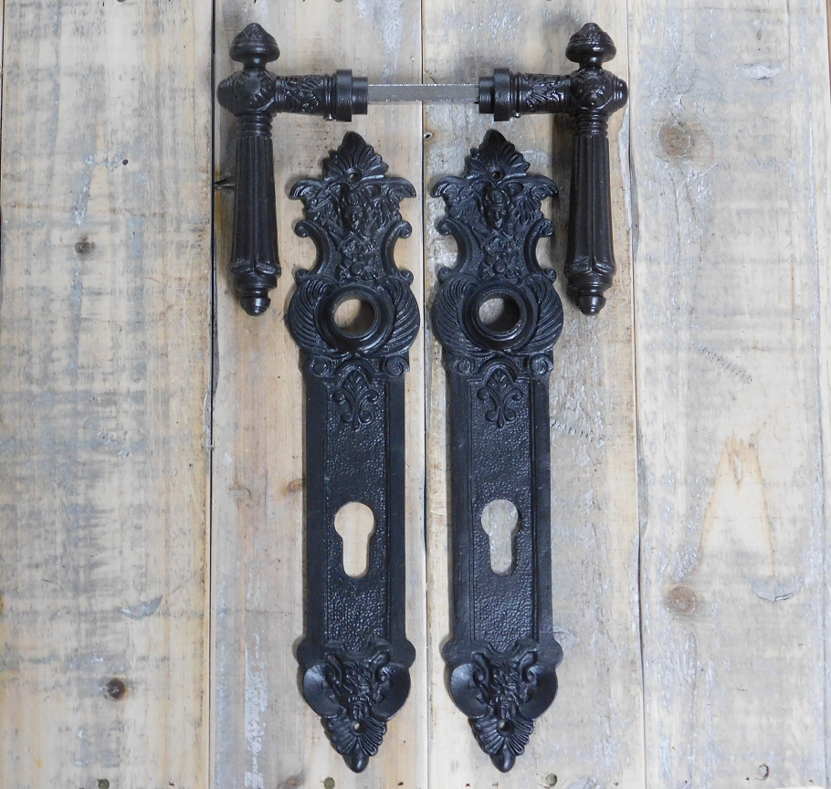 Diese Türklinken-Garnitur verleiht Ihrer Haustür ein überzeugendes Aussehen wie aus der Jahrhundertwende. Die Türbeschläge sind aus Antik-Eisen gefertigt haben eine sehr perfekte und hochwertige Qualität!