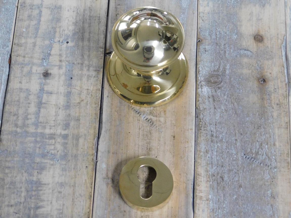 Deurknop messing met veiligheidsrozetten, topkwaliteit in gepolijst messing.