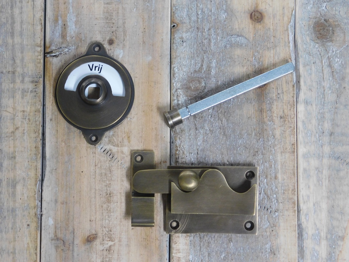 Mooi slot voor uw toiletdeur, volledig van gepatineerd messing.