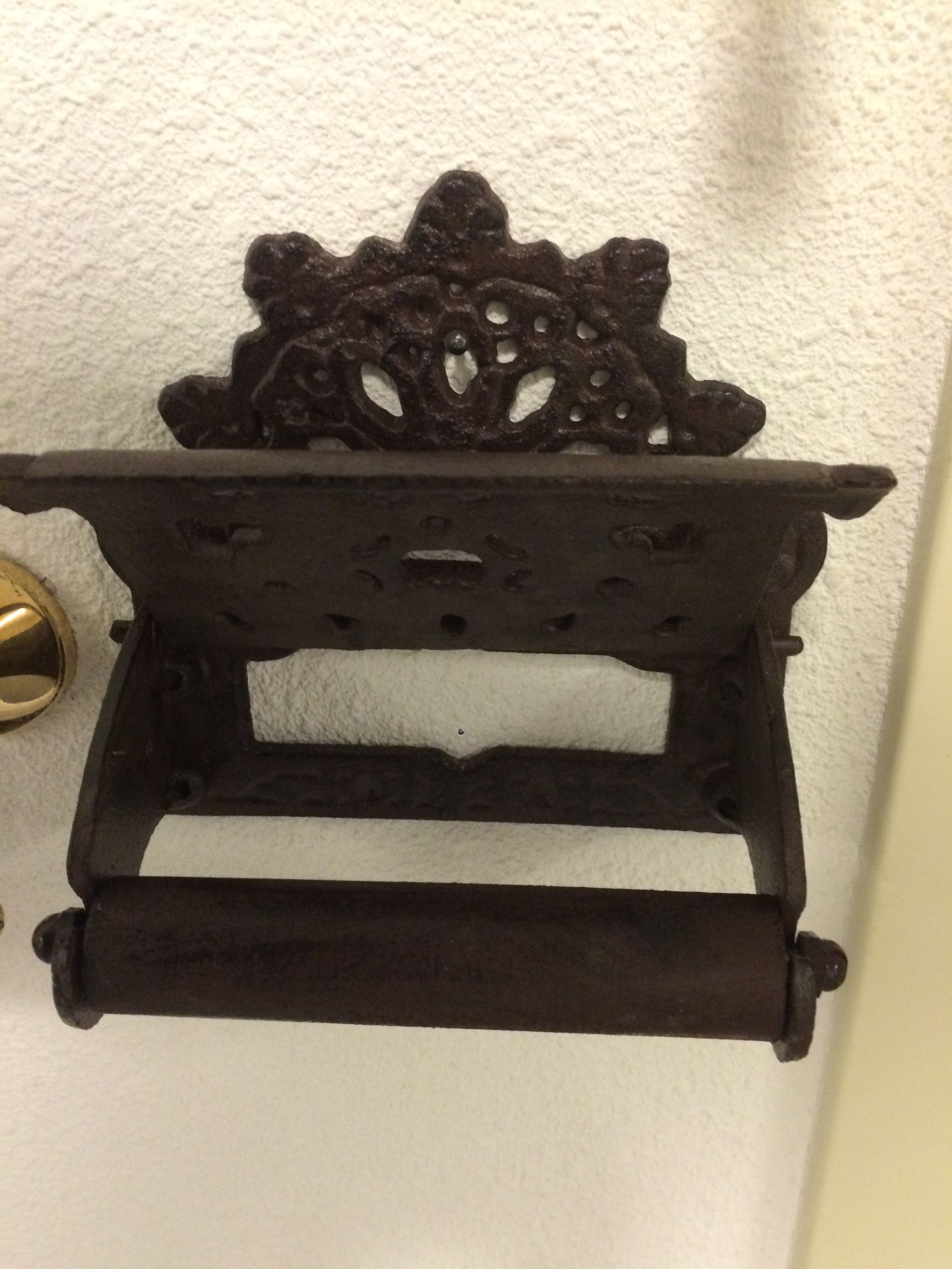 Mooie zware nostalgische toiletrolhouder, gietijzer, kleur bruin.