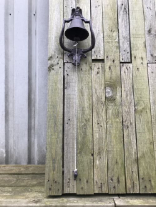 Sierlijk voor bij de voordeur. Een deurklok in de vorm van een stier met zijn horens en daarop een adelaar. Het is vervaardigd uit gietijzer in het bruin.