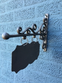 Ein romantisches, schön geschnörkeltes Aushängeschild aus Schmiedeeisen für Ihr Ladenlokal.