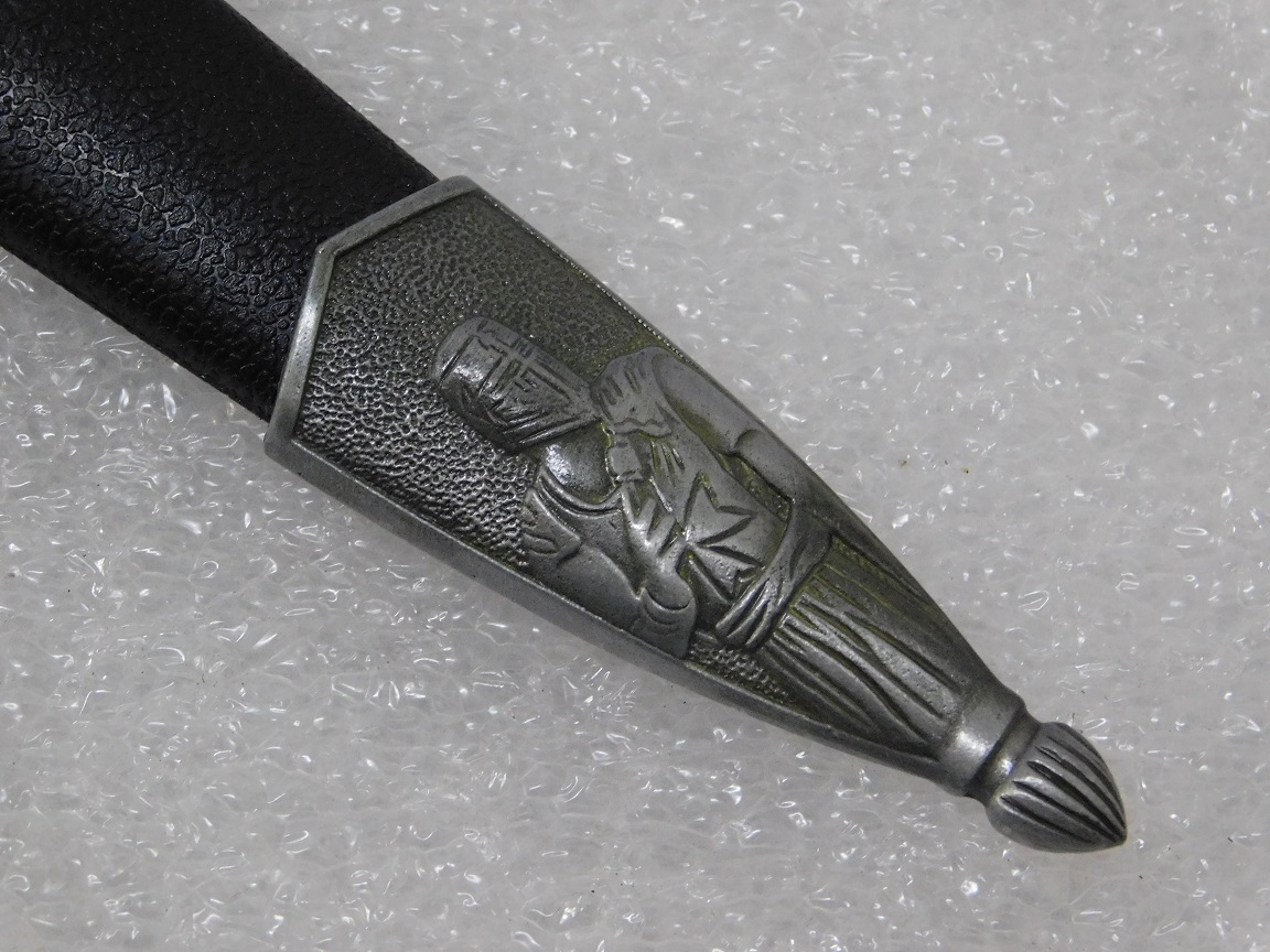 Deze indrukwekkende dolk, compleet met een gedetailleerde schede, is niet alleen een prachtig decoratiestuk maar ook een ode aan ambachtelijke vakmanschap.